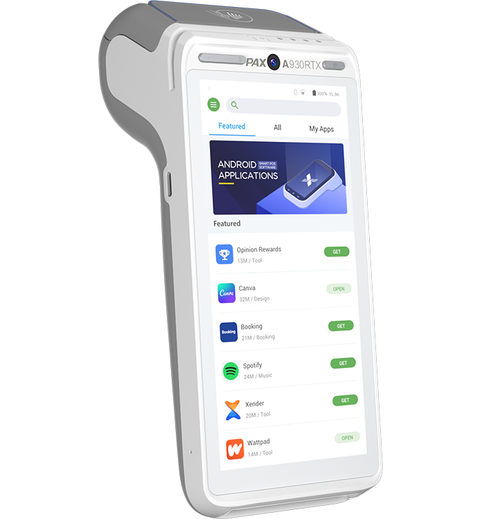 PAX A930RTX обеспечивает прием любых платежных карт и дальнейшее перечисление средств на расчетные счета в любом банке РБ. Сканер штрих-кода/QR-кода. Возможность установки дополнительных программных приложений и интеграции с внешними решениями.